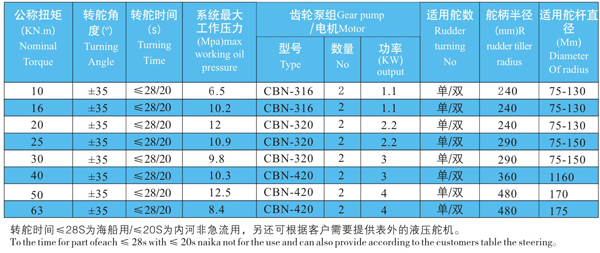 本系列舵機采用手動換向閥控制,推舵機構為擺缸式。在系統中有蓄能器,為應急能源,轉舵時間能廣泛調節。此舵機適用于貨船、客船、推拖船、沿海漁船及軍船等各種船舶。適用于各類航區。